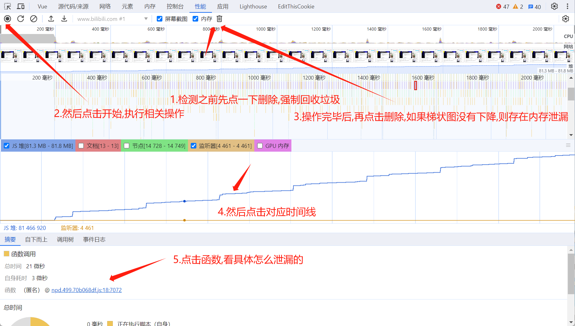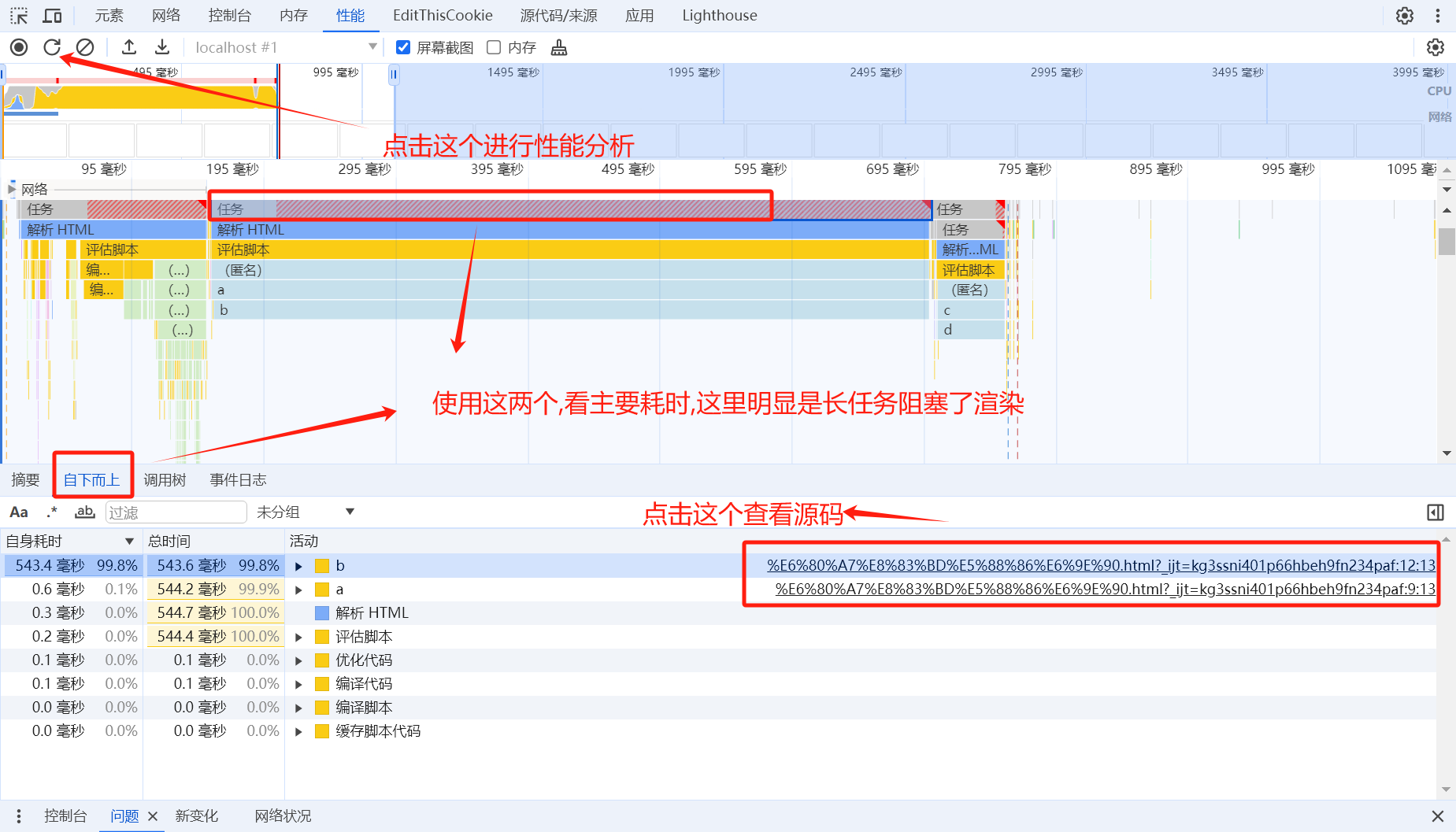 利用Chrome DevTools 的 Performance工具排查,使用性能分析模块