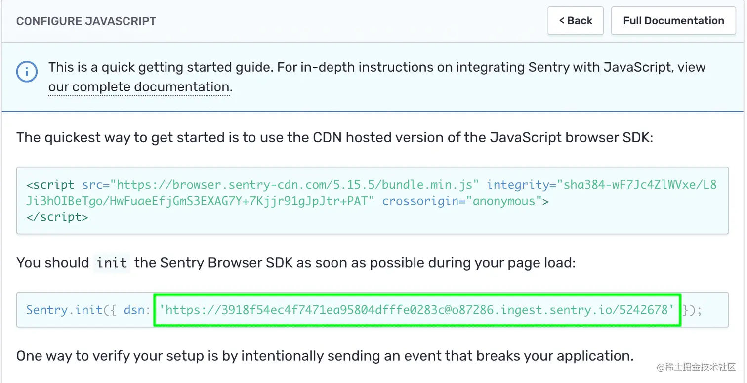 1. 复制DSN key 并将其放在手边,因为我们会将密钥复制到源代码中。