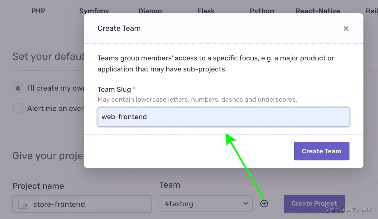 4. 根据您希望监控的代码为您的项目选择语言或框架在本例中为 JavaScript。