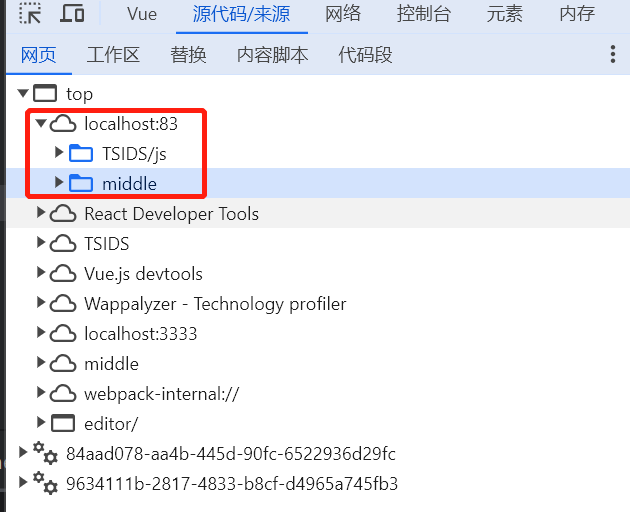 此时,我们访问localhost:83/middle,nginx帮我们代理转发到http://192.168.18.228:9999/middle/,获取到主应用,浏览器会将主应用下载到当前域名,也就是localhost:83下的middle目录(因为主项目的vue.config.js配置了publicPath: '/middle',)